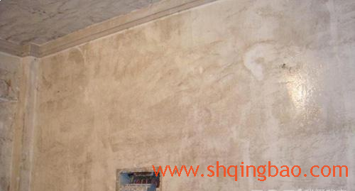渗漏水旧墙面须堵漏修补(用专用防水腻子)——高压水枪扫把或钢丝刷冲刷清除--用杀菌水(或漂白剂)刷洗--清水冲洗后晾干。